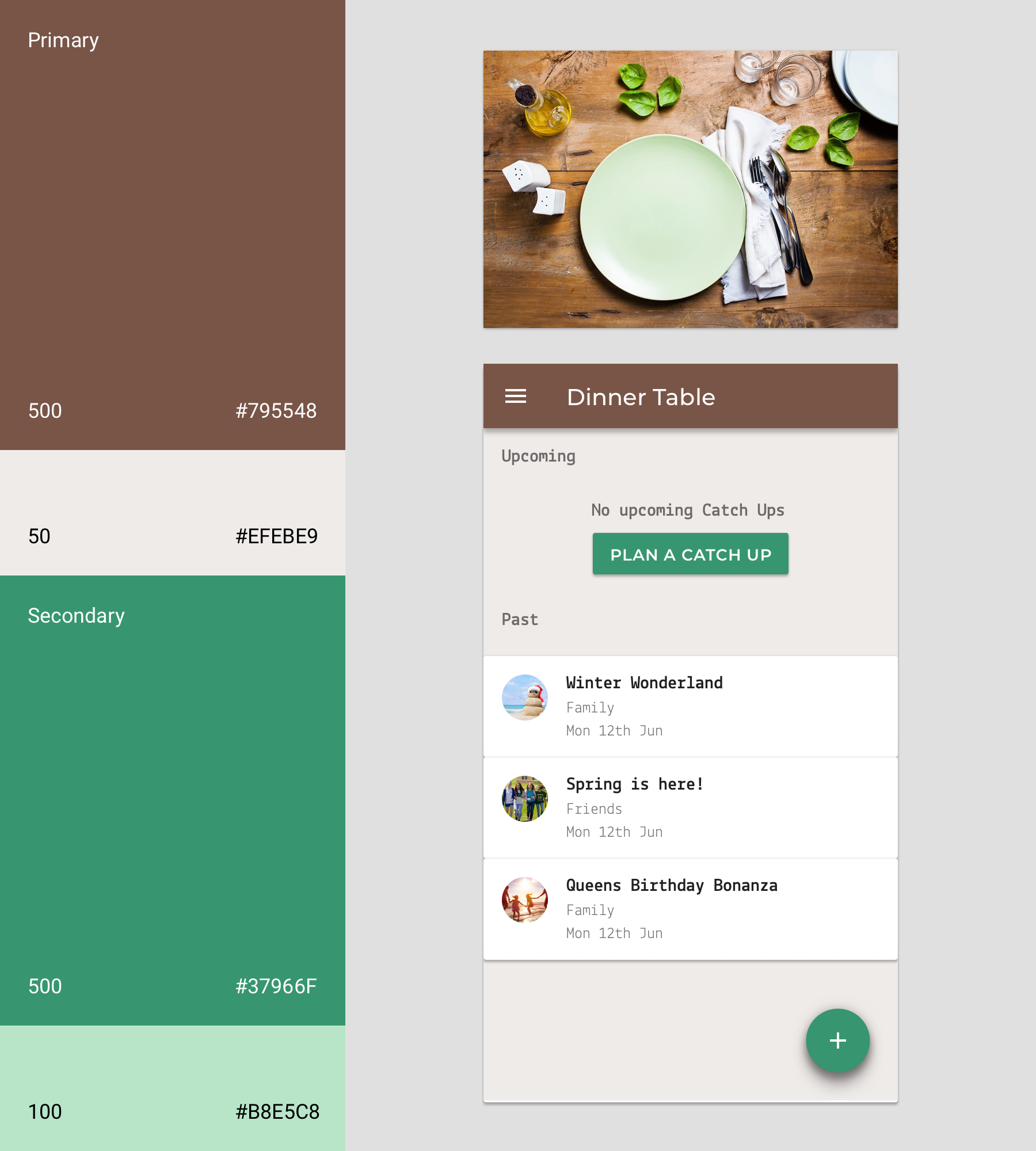 Dinner Table uses a color theme inspired by the deep browns and rich greens from the real life dinner table.