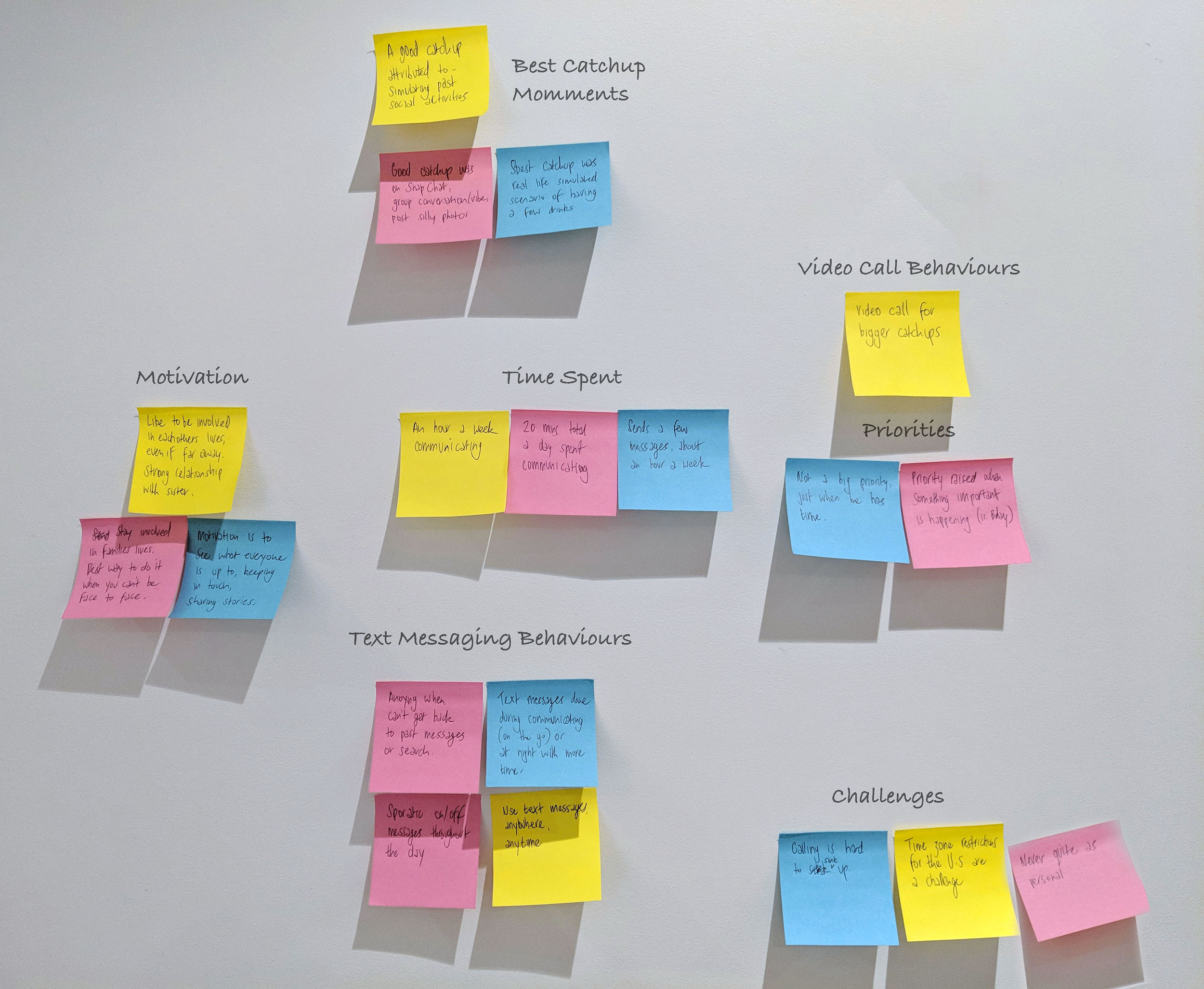 People need a way to have better catch ups that work for time zone differences, are more personal than text messages, and simulate real life activities because time zones don’t always sync, instant messaging can become impersonal, and simulating real life activities are the best catch ups.
