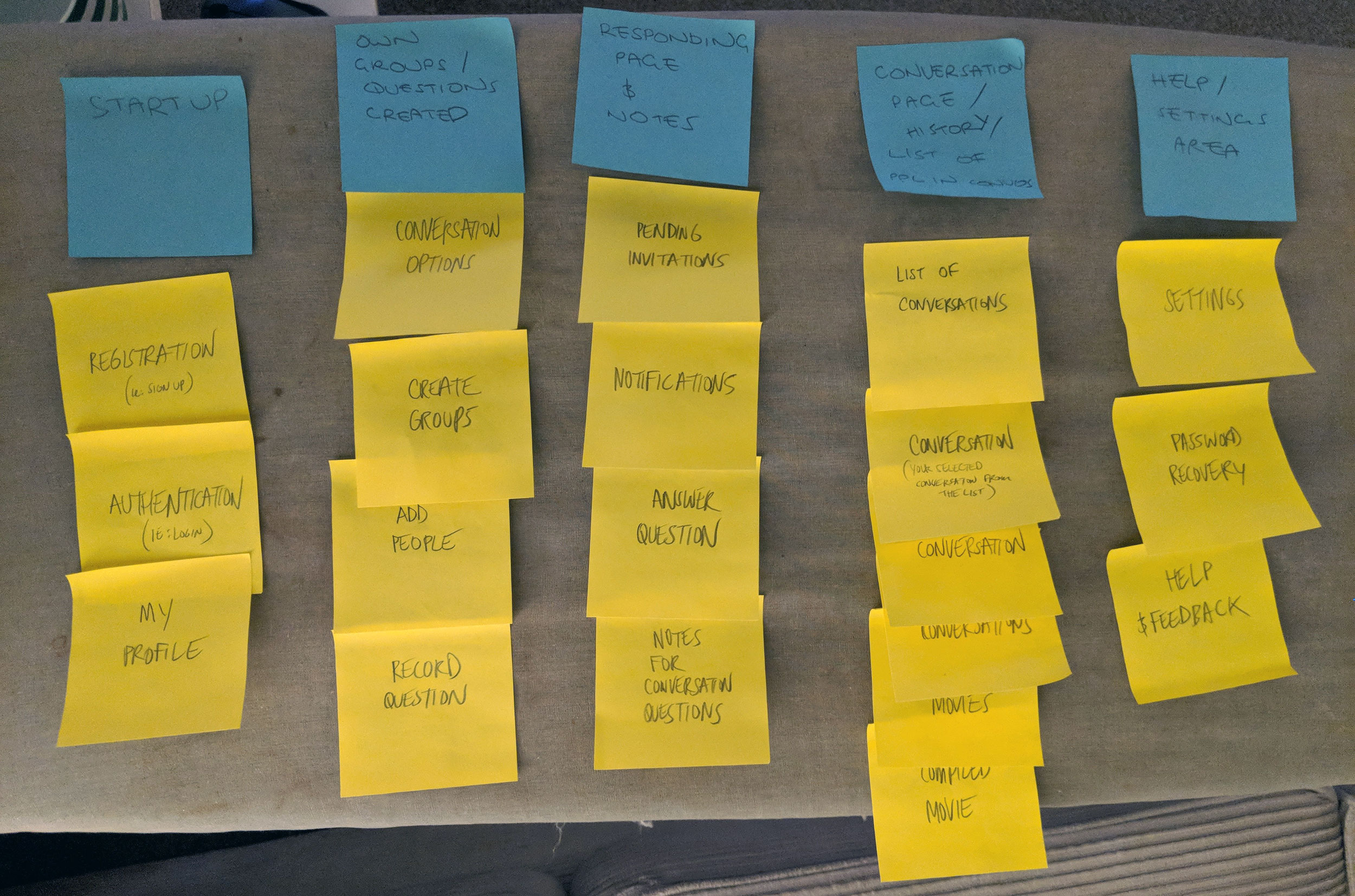 In its simplest form, the features we need are to allow users to connect, start group conversations, record questions from notes, record answers, and stitch them together into one amazing video. This can all be done with time zone and geographical boundaries. While enhancing the conversation with funny overlay effects or look up interesting icebreakers or pop culture topics, these are not essential to the primary need of the user.